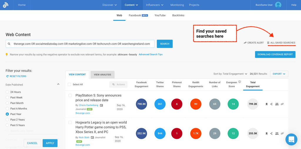 But here’s a shorthand to BuzzSumo’s Advanced Searches:
