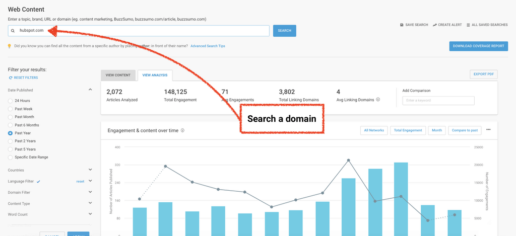 Save a search of publisher domains in BuzzSumo ⬇️