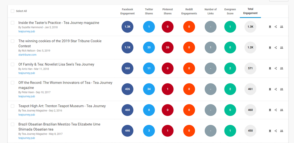 First, let’s use the BuzzSumo tool to monitor backlinks to a specific blog post so we can find opportunities for our future blogs. Let’s say we run a website about all-things tea, and we want to write a new blog.