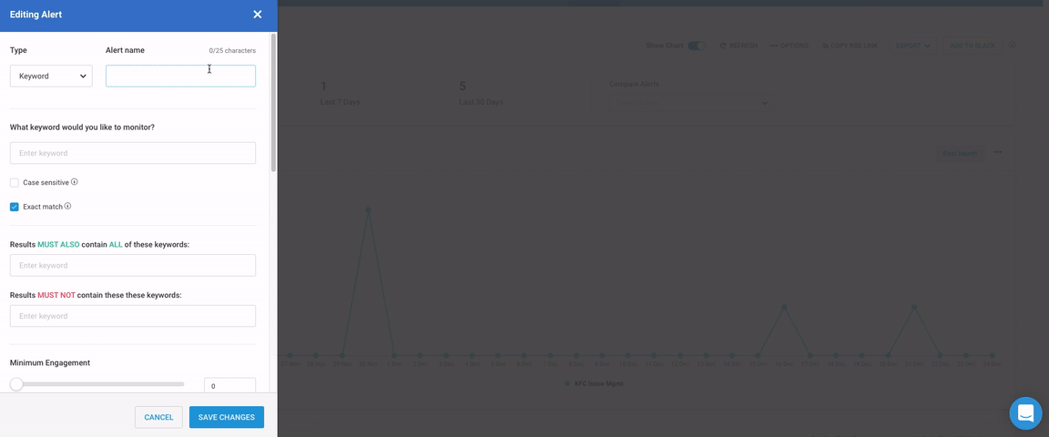 2. Set up a keyword alert for all your known crisis topics, such as global, political or social crises, so that whenever your brand is mentioned in relation to these topics, you get an instant notification.
