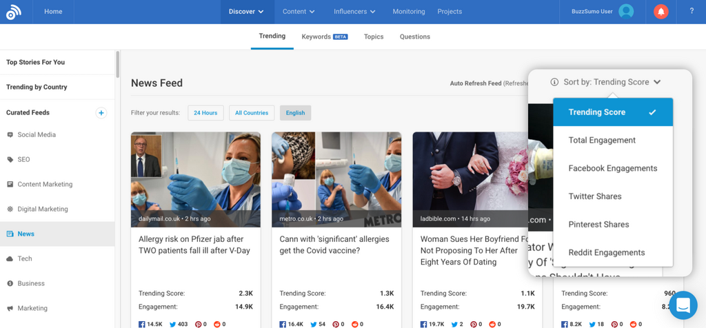 Some of our large, global customers also choose to monitor trending news around their brand in the form of a daily digest to their inbox, using BuzzSumo’s Trending tool.