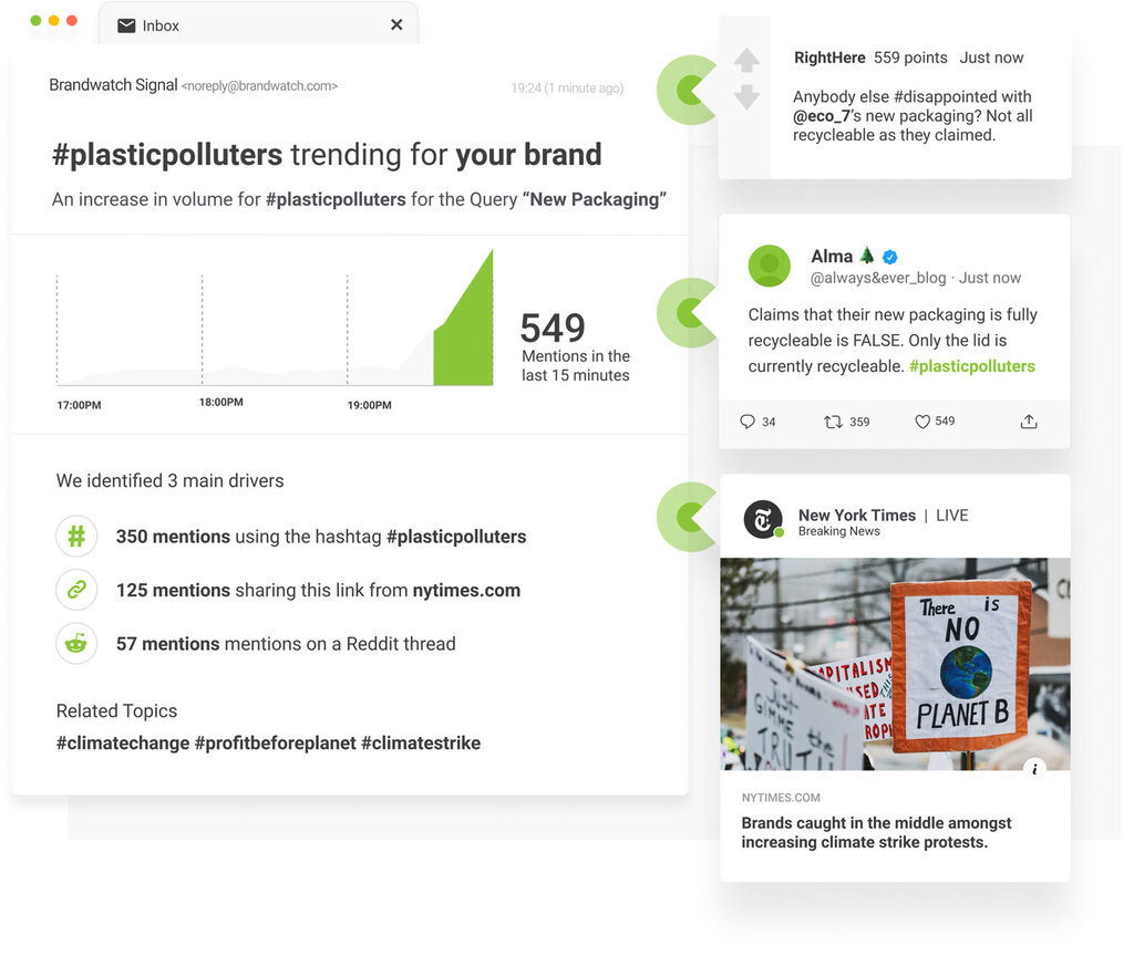 Our friends at Brandwatch track billions of conversations across the web to help you do just this. Using Signals, they alert you to a potential crisis or trend via email when there are sudden changes in your data, such as trending stories or shifts in sentiment.