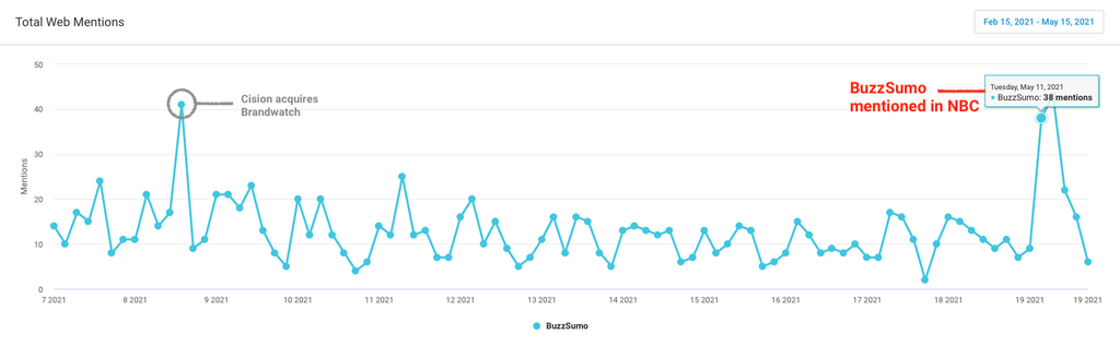 As a result of our reactive PR – which was catalyzed by the organic mentions we discovered within BuzzSumo – we managed to build sustained interest in BuzzSumo data.