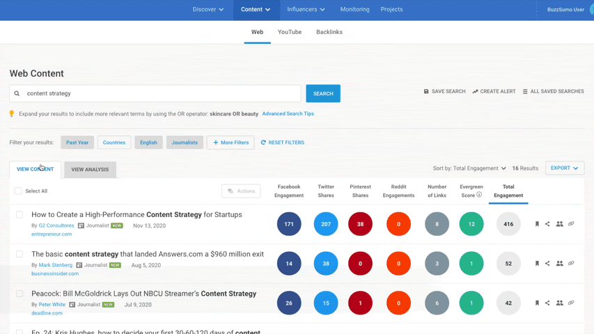 Enter any topic, term or url to search to see BuzzSumo in action. It’s free!