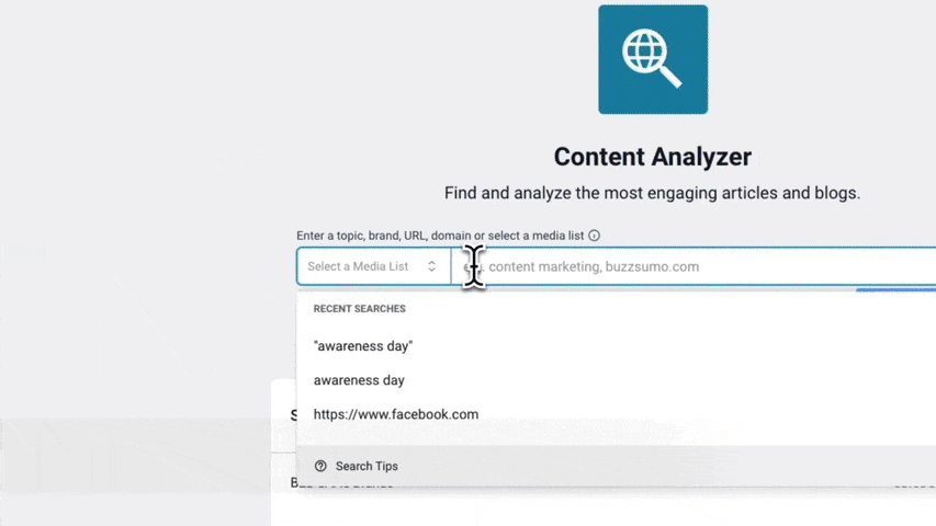 Enter any topic, term or url to search to see BuzzSumo in action. It’s free!