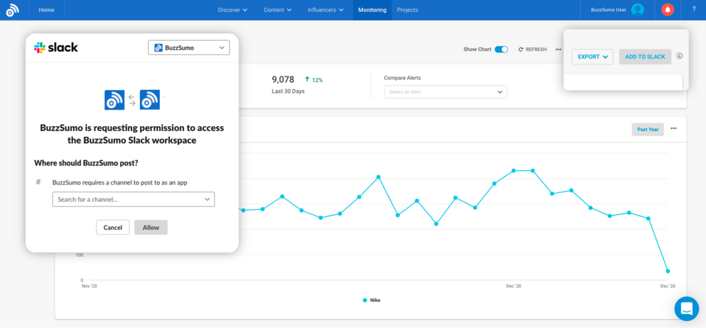 For instant alerts to your campaign assets, set up a backlink alert in BuzzSumo Monitoring, and get notified via email or Slack every time you or your client bags a mention.