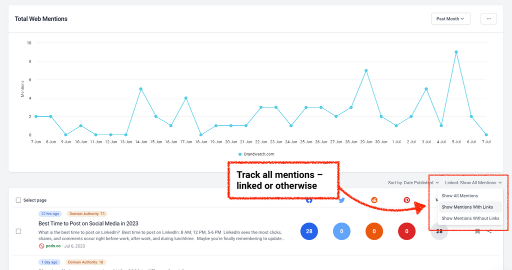 BuzzSumo’s Monitoring & Alerts tool gives you the ability to track both linked and unlinked mentions.