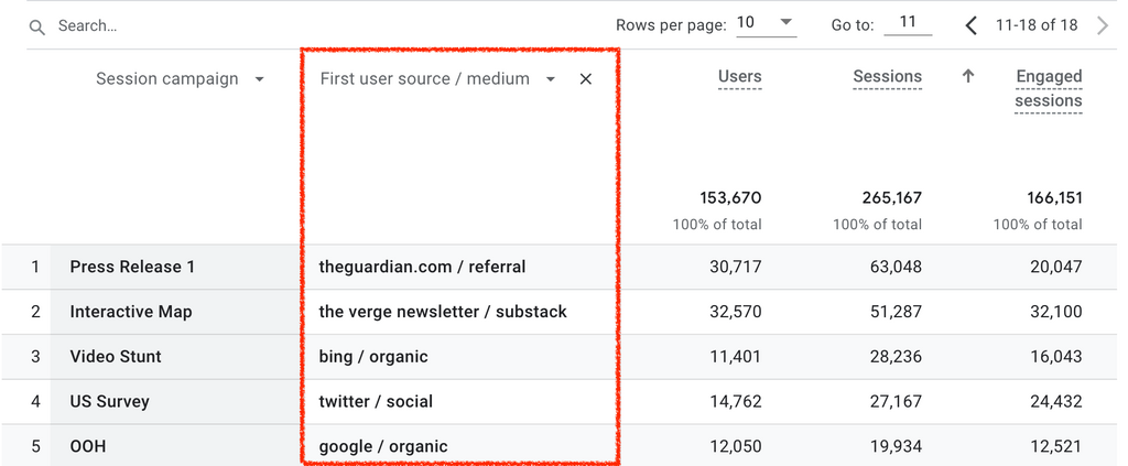 Engaged sessions are trickier to earn than sessions, so if your PR content racks them up, be sure to shout about it.