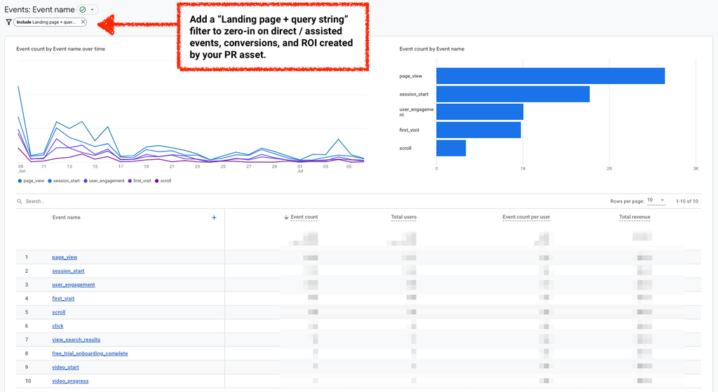 In the same report you created earlier, you can assess how audiences behave and interact with your PR campaign content.