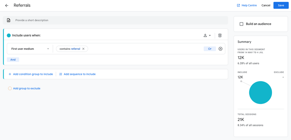 Hit save and apply. This will be automatically added to “Segment comparisons” on the right.