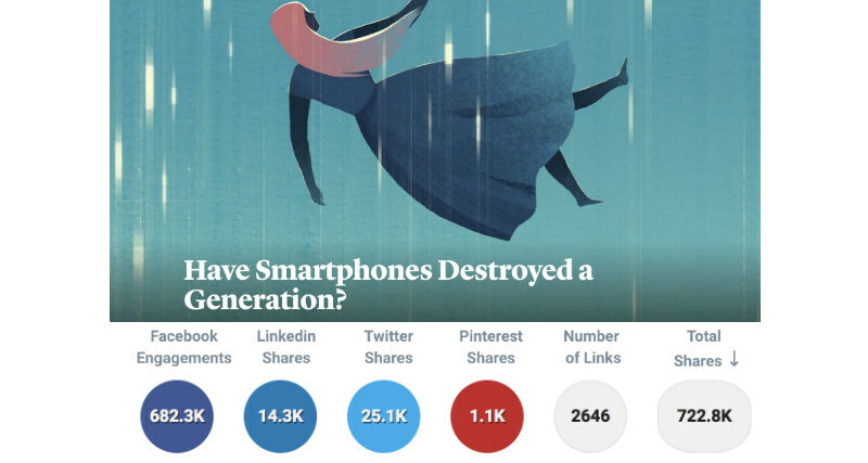 This topical opinion post on The Atlantic gathered over 700,000 shares but also over 2,600 links. Many of the statistics in the article have been widely challenged but the question “have smartphones destroyed a generation?” clearly resonated with Facebook audiences.