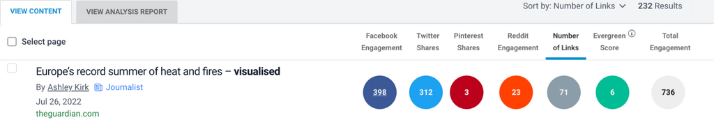 At BuzzSumo, we contextualize all our backlinks with engagement data, to help you prioritize your most engaging coverage.
