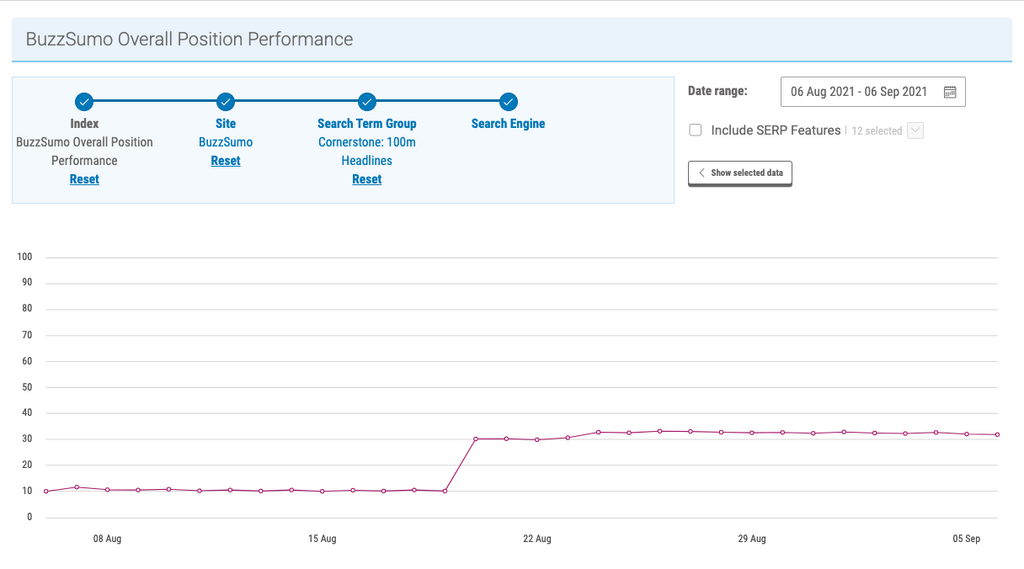 We now rank at the top of page one for the expensive keyword "BuzzSumo Alternative", and have successfully changed the mind of users that would otherwise have looked elsewhere.