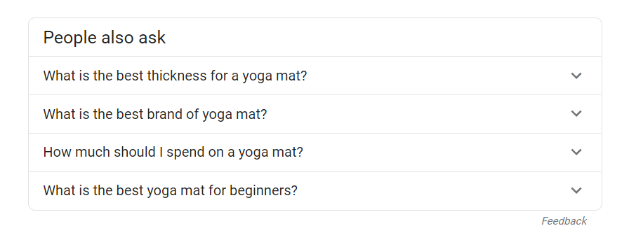 By running the keyword “yoga mat” through the BuzzSumo Question Analyzer, you get tons of potential topic ideas aggregated from forums across the internet:
