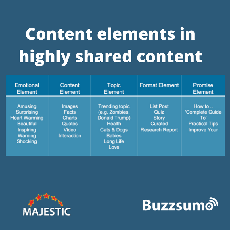 Research into millions of articles and billions of Facebook posts has allowed us to identify five core elements in content that is heavily shared.